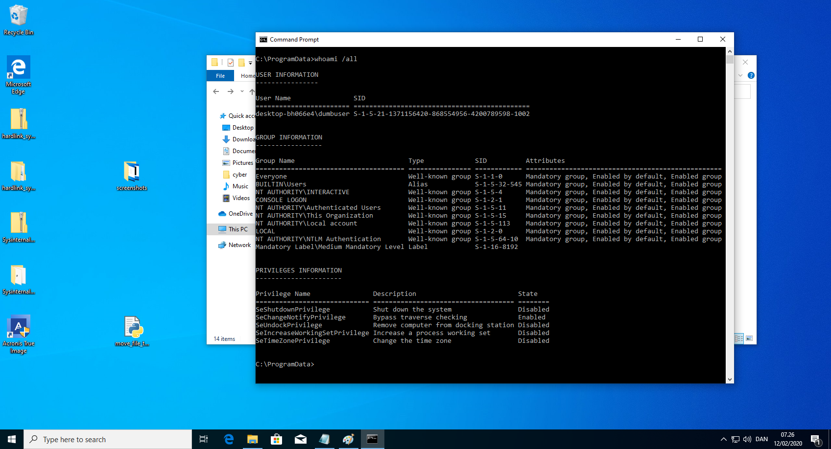 4. Run ransomware_sim.exe C:\\Users\\UNPRIVILIEGEDUSER\\